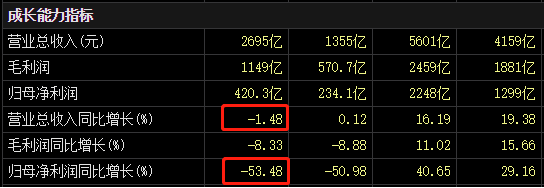 业绩角度看,腾讯控股尚未走出困境。今年上半年,营收总额2695亿元,规模庞大,但增速为负的1.48%,处于萎缩态势。归属母公司净利润420.3亿元,利润可观,但同比去年减少53.48%,颓势尽显。