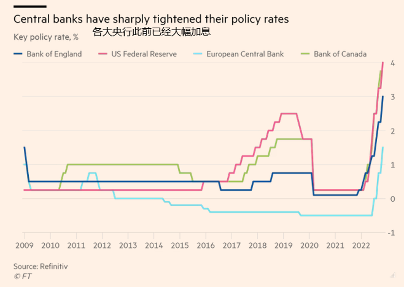 美联储已经准备在12月放慢加息步伐,澳大利亚和加拿大央行在最近的会议上加息的幅度均已经下调,这些举措是为了检验各经济体对早些时候金融环境迅速收紧的反应。
