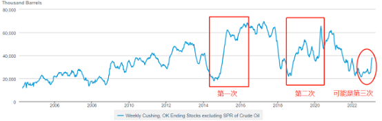 EIA原油库存上限6942万桶,下限1789.9万桶,最新值3800.9万桶,具有上升动力。近二十年以来,EIA库存曲线有两次大幅上升期,第一次发生在2014年7月-2016年5月,第二次发生在2018年7月-2020年5月。第一次上升期,WTI价格从105美元跌至50美元以下,累计跌幅超50%。第二次上升期,WTI价格从74.25美元跌至36.02美元,累计跌幅同样超50%,如果从去年6月开始的EIA库存上升是第三次,那么WTI价格极有可能再次出现50%左右的下跌,亦即从115美元跌至57.5美元左右。需要提醒的是,57.5美元只是分析模型给到的预期价格,实际价格走势有较大概率出现偏差,需理性看待。