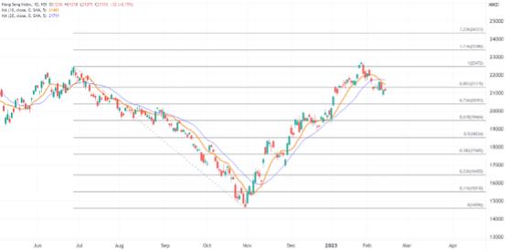 周二港股早段主要在21200附近拉锯,半日轻微收高46点不过午后再度转跌。各大板块涨跌互现,午后唯独金融和地产分类指数上涨,其中地产指数涨逾1%,科技指数则小幅跌0.8%。