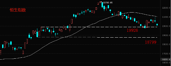 由于恒生的互联网板块中的大部分个股都在港美两地同时上市,所以恒生指数受到美股市冲击的概率较高。截至今日10:16,HSI跳空下跌2.12%,悲观持续蔓延,银行、互联网、地产等权重板块纷纷走弱。恒数最新市场价格20064点,至今日收盘有可能失守两万点整数关口。