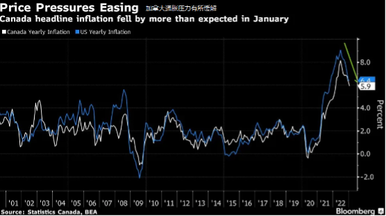 今年年初,加拿大的通货膨胀率已经从去年夏季8.1%的峰值降至5.9%。不过,就业市场依然紧张,此前连续两份报告表现强劲,本周五将公布新一轮就业数据,届时会有更详细评估。
