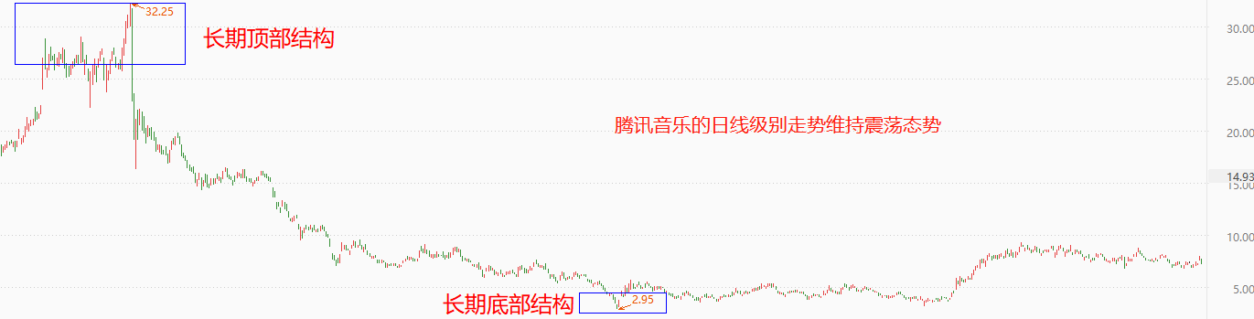 技术角度看,腾讯音乐(美股)的日线级别走势仍维持震荡态势。2021年3月份形成长期顶部,至2022年3月份触底并形成长期底部。底部形成后,腾讯音乐的股价并没有迎来大张旗鼓的反弹,反而进入一年多时间的持续震荡。2022年11月至12月,腾讯音乐出现短暂的上涨波段,不过,进入2023年后,股价走势再次陷入震荡。中期的阻力位为10美元整数关口(对于港股市场来说是40港元关口),上破概率较高,但突破出现的时间较难预判。