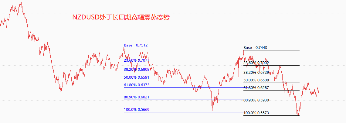技术角度看,NZDUSD处于长周期震荡态势。2015年9月份以来,NZDUSD最高不破0.7512,最低不破0.5669,汇率在1843个基点区间内上下震荡。最新一轮震荡起点在2021年2月份,反弹起点在2022年10月份,截至目前的反弹幅度为50%,远未达到90%以上的震荡标准。最新市价0.6136,长远的预期目标价0.7400,期间尚有非常大的上涨空间。中期目标位0.6508,短期目标位0.6287。需要提醒的是,由于美联储也面临停止加息的局面,随着美元指数的下跌,NZDUSD也有可能从震荡态势进入空头趋势。