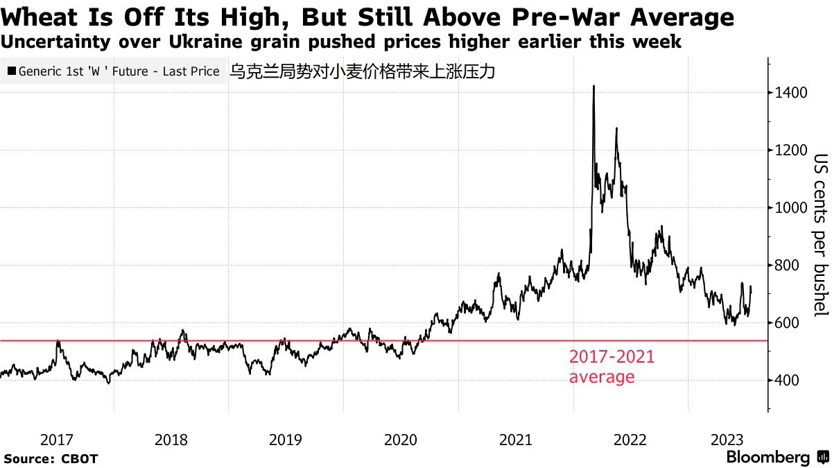 不过谷物市场仍供应充足,得益于巴西创纪录的大豆和玉米收成,最大的小麦出口国俄罗斯也有不错的收成。然而俄罗斯近期宣布,退出一项允许乌克兰粮食安全通过黑海的协议,加剧了近期农产品价格的上涨和不确定性。