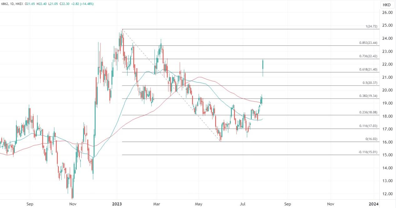 海底捞(06862)发盈喜股价表现抢眼,预计上半年持续经营业务收入不低于188亿元(人民币,下同),按年增加逾23.7%;持续经营业务净利润不低于22.00亿元,去年同期为7200万元。海底捞去年分拆海外业务特海国际(09658)上市,余下业务归类为持续经营业务。