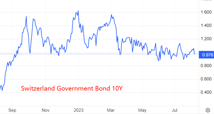 瑞士并没有高通胀问题,各项经济指标多运行于合理区间。由于缺乏激进加息政策支撑,瑞士十年期国债收益率仅为0.974%,远低于美国和欧洲其他国家。内外负利差的存在,导致瑞郎汇率存在长期贬值风险。
