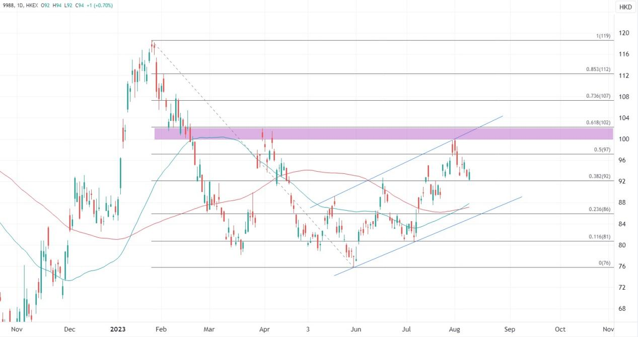 阿里巴巴(09988)港股股价今年以来累计上涨16%,5月底以来进入上行通道,上周短暂触及100港元关口但触发调整,当前在92港元获得支撑,如果业绩带来惊喜,如过去四个季度的业绩受益都超过了主流预期,可以重新带动测试上述关口。
