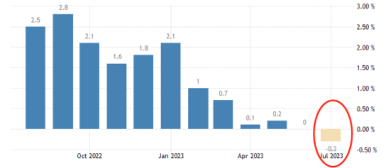 中国7月份CPI年率增速-0.3%,2021年3月份以来首次出现负增速。物价升高意味着商品需求旺盛,反之则意味着商品需求疲软。通货价格普跌时,企业增资扩产的意愿不足,商业银行的信贷资金潜在投放空间被压缩。利率是资金借贷的成本,当企业借款意愿普降时,利率自然回落。