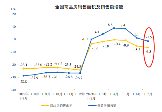 据统计局数据,1—7月份,商品房销售面积66563万平方米,同比下降6.5%;商品房销售额70450亿元,下降1.5%。房地产市场成端不活跃,导致上游开发商拿地热情不高。土拍是资金密集型的环节,地产开发商缺乏高溢价拿地的信心,自然降低对银行信贷资金的需求,一年期LPR利率调降也是对市场供需的反应。