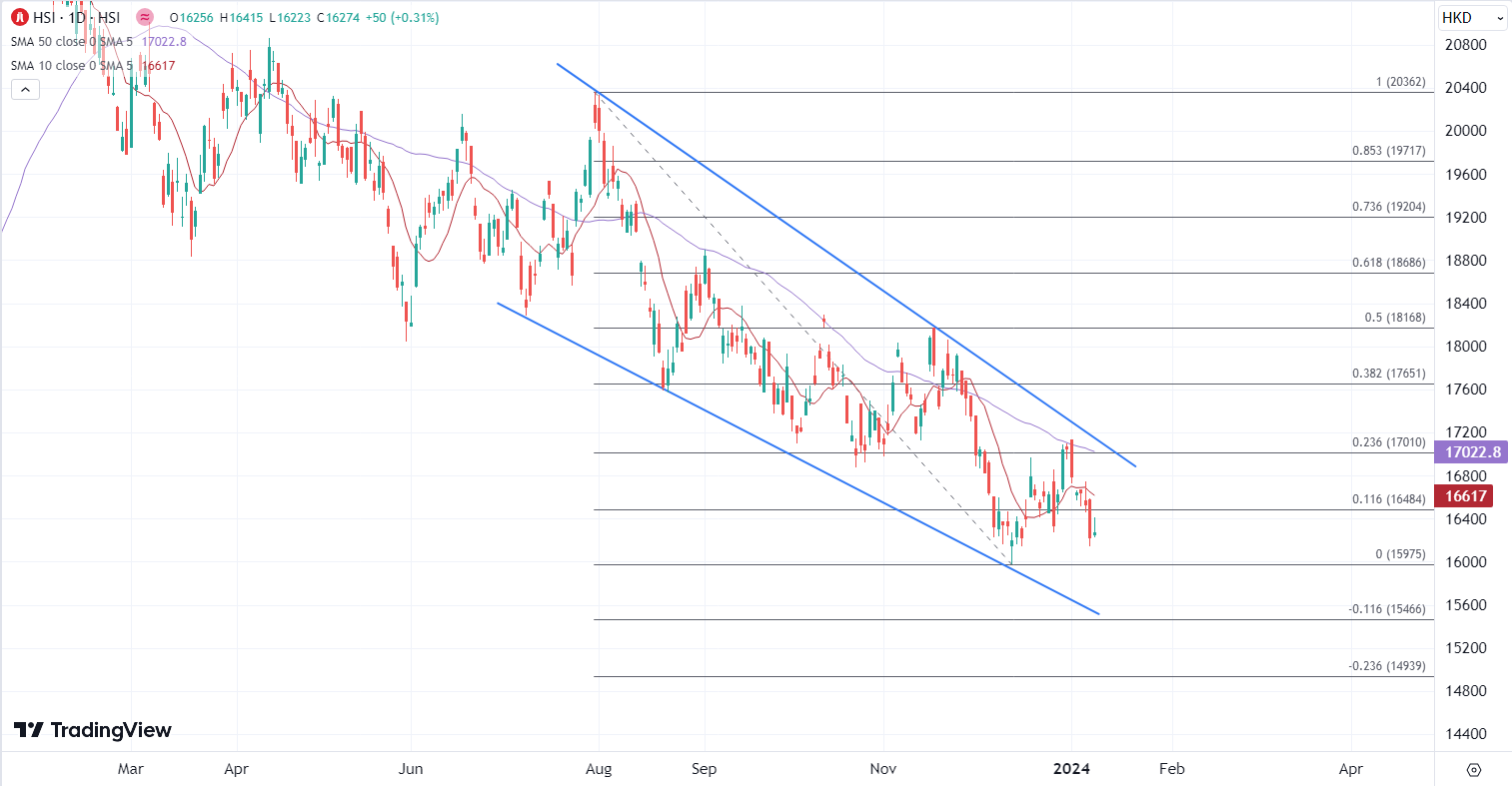 港股自上周来连泄累计跌逾800点,创26年来的最长开局跌浪,随着港股弱势扩大,北水资金流入也见缩水,如果疲惫情绪继续主导,恒指受困在10SMA下方,去年创下的低点在16000关口可能暂时提供支撑,但不排除还会继续破底。