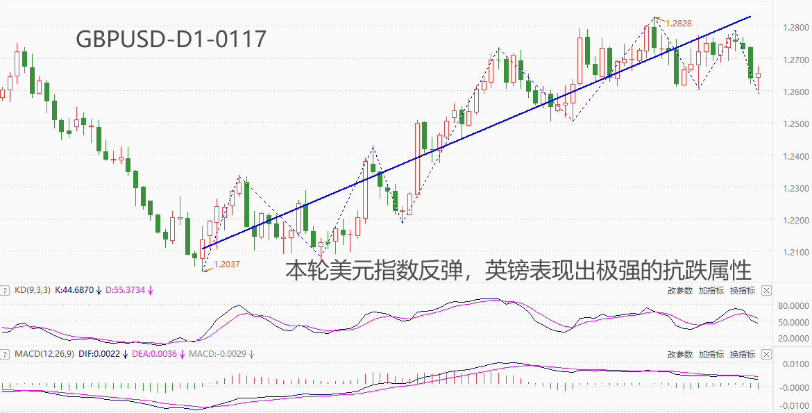 英镑占美元指数的比重超10%,仅次于欧元和日元,排名第三位。逻辑上讲,美元指数进入强势周期时,英镑大概率将出现贬值走势,亦即GBPUSD下跌。然而,12月28日至今,美元指数累计反弹2.4%,欧元、日元均出现大幅贬值迹象,只有英镑仍保持窄幅震荡态势,表现出极强的抗跌属性。什么因素支撑英镑保持币值稳定?我们认为有以下几点原因: