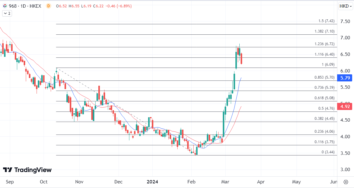 昨日光伏股普遍受压,但唯独蓝筹信义光能(00968.HK)先走低后反弹创逾半年高,盘中升逾4%。今日股价在高位出现回吐,低开低走后回到6.5港元下方。