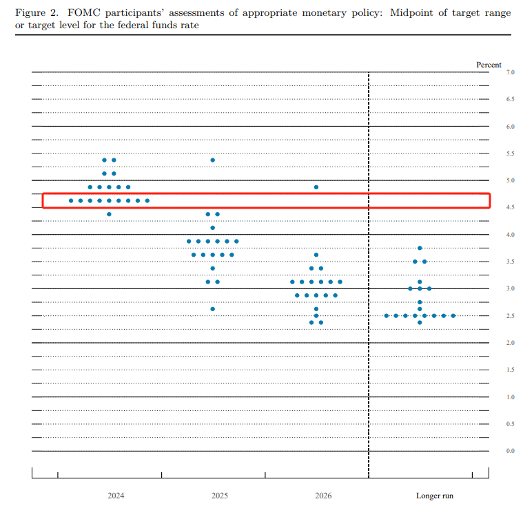今日2:00,美联储公布最新一期利率决议结果,维持5.25%~5.5%的基准利率不变,QT速度保持不变。点阵图显示,多数委员对2024年底的利率预期依然维持在4.5~4.75%(去年12月份的点阵图同样显示该区间),但对2025和2026年的政策利率中位数预期抬高至3.9%和3.1%。三十分钟后的货币政策新闻发布会上,美联储主席鲍威尔讲话称:我们的政策利率可能已达到峰值;在今年某个时候开始放松货币政策是合适的。回顾今年2月1日的美联储决议,鲍威尔同样提到:我们的政策利率可能已达到峰值,今年某个时候开始降息可能是合适的,降低政策利率过晚可能会过度削弱经济。三月份决议重提年内降息,加剧了市场的恐慌情绪,美元指数遭遇重挫。截至昨日收盘,美元指数累计下跌0.39%,最低触及103.38点。今日开盘后延续跌势,截至15:53,盘中跌幅0.06%,最低触及103.17 。预计今日美指将会向下试探103整数关口的支撑作用。