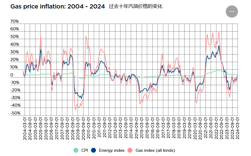 可见能源价格对通胀变化起着至关重要的影响,而当前中东紧张局势不时推高油价,而天气变暖通常意味着对天然气的需求增加,在美国能源价格的季节性上涨始于3月和4月,预计汽油价格将缓慢上涨,直到7月达到峰值。