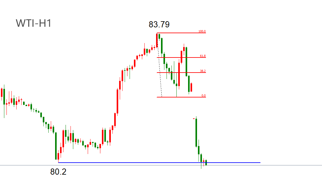 短周期来看,WTI跌势显著,83.79美元至今的跌幅已经完全回吐了此前的涨幅。最新市价80.13美元,处于前期低点80.2美元附近。一旦该点位被有效跌破,下方将不存在明显支撑位位,预计后市大概率将会出现相对流畅的下跌波段。
