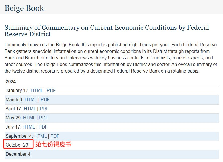 本周四2:00,美联储将公布年内第七份经济状况褐皮书。褐皮书是对12个地区性联邦储备银行报告的汇总,每年发布8份,是研判美国宏观经济发展的重要参考资料。褐皮书的行文格式比较统一,需要比较新旧两份报告的内容才能够准确发现经济的变化。在9月份发布的褐皮书中提到:“三个地区的经济活动略有增长,而报告经济活动持平或下降的地区数量从上一季度的五个增加到本期的九个”。如果本次发布的褐皮书,经济活动增长地区的数量大于三个,意味着美国宏观经济回暖,美联储降息节奏有望放缓。反之,则意味着宏观经济延续疲软态势,利空美元指数。