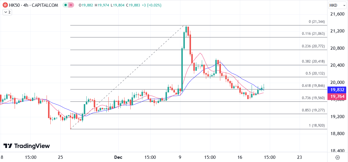 港股多仓资金连续三日录净流入,进一步加持大型科技股,为今日港股的反弹带来空间,周四凌晨美联储预计宣布第三次降息,金管局跟进也会给港股带来政策的提振。技术上短线突破4小时图主要均线,看是否能跟进至20000点关口。