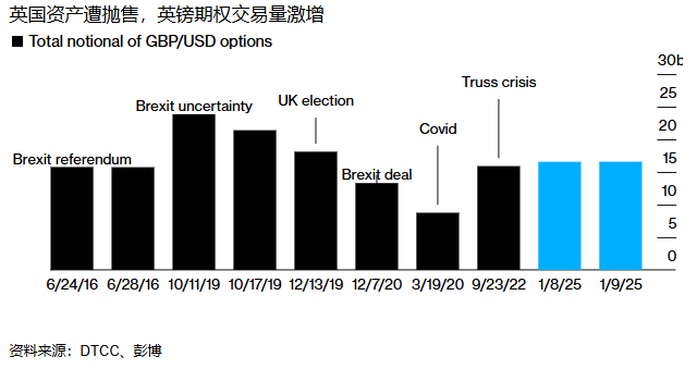 交易员们担心,如果不修改政府的财政计划,抛售可能会加剧。期权市场的交易员们正在为英镑进一步下跌8%做准备。借贷成本的上升给财政大臣雷切尔·里夫斯带来了压力,因为99亿英镑(122 亿美元)的财政空间正在减少。