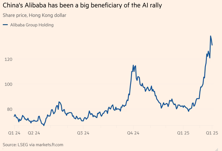 在本周放缓之前,中国互联网巨头股价一路飙升,因为 DeepSeek 让投资者对互联网行业的增长潜力充满信心。“BATX”的中国大型科技公司包括比亚迪、阿里巴巴、腾讯和小米,今年初以来整体股价上涨46%,而恒生科技指数今年以来上涨逾27%。