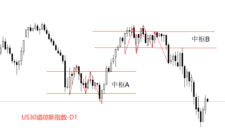 走势结构角度看,去年12月至今年1月中,道琼斯指数形成中枢A,随后启动一轮涨势。今年2月份,道琼斯指数形成中枢B,随后启动新一轮跌势。截至目前,尚未有新的中枢结构形成,道琼斯指数的中期行情偏空。最近两个交易日连续大涨,但仅限于短期反弹,待寻得阻力位后预计将再次受制于空头趋势。当前建议关注中枢A区域(42070~43030),有可能成为当前反弹波段的强阻力区。下方关注本月低点40652点,一旦该点位被突破,则下跌空间打开。