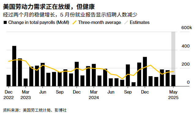 由于劳工部5月份的就业报告涵盖了4月份的数据,因此该报告应该能够反映出企业在4月2日宣布“解放日”关税后是否放慢了招聘速度。市场一直在寻找特朗普关税行动损害就业创造和推高通胀的迹象,但迄今为止,这两种迹象均未大幅显现。一份符合预期的就业报告将表明,至少到目前为止,美国经济已经经受住了关税及其带来的不确定性的考验,但是冲击可能还有待显现。