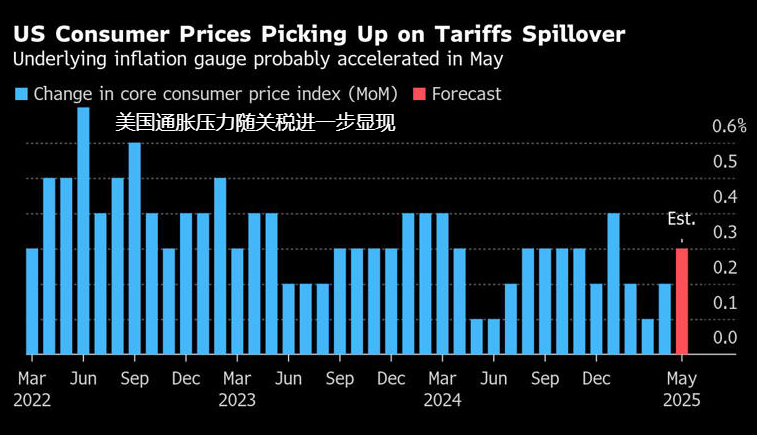 这一份通胀报告会让人们深入了解关税的影响,目前投资者对通胀飙升持谨慎态度。对于5月份CPI将表现温和的预估,是出于非必需服务业的通缩将足以抵消商品通胀走强的考量。在上个月降至2.3%之后,基数效应可能会导致未来两个月的同比通胀读数上升。
