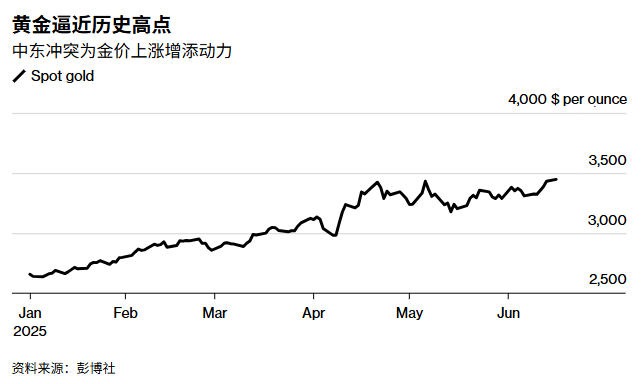 如果以色列和伊朗针锋相对的攻击持续,不仅是原油,黄金的地缘政治风险溢价将居高不下。当前最新的中东局势已经促使投资者转向避险资产,国际金价正在重新逼近4月份创下的纪录高位。地缘政治风险的突然上升为金价上涨增添了更多动力,而这波上涨主要源于特朗普激进的关税议程对全球经济增长的威胁,如果中东局势成为黄金新一轮创造新的纪录高位的动力,本周不排除突破3500美元关口的可能。