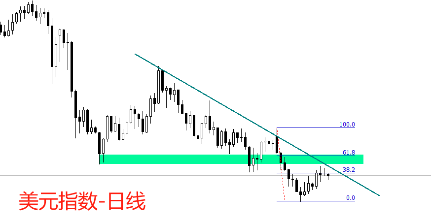 走势结构角度看,日线级别,美元指出处于中长期空头趋势之中,趋势力度较强。最新波段为反弹,最新市价处于前一轮下跌波段的0.382分位,有可能遇阻回落。中短期下降趋势线与市价较为接近,可能发挥阻力作用。短期重点关注上方阻力位98.24和下方支撑位96.32点。