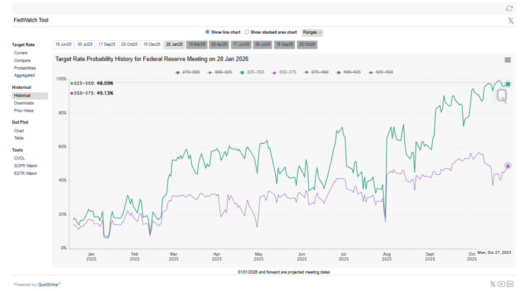 美联储主席在隔夜降息后发出了谨慎的信号:暗示这可能是今年最后一次降息,尤其是政府停摆导致官方数据缺失,经济的真实状况继续笼罩在不确定性之中的情况下。这一表态可能压制黄金多头。贸易与地缘政治同样为市场带来复杂信号。中美双方就贸易协议框架达成初步共识,缓和了系统性担忧,但也压制了避险需求。与此同时,俄美在战略武器上的角力升级,普京宣布新型核动力巡航导弹试验成功,特朗普回应称美国已在俄罗斯沿海部署核潜艇,这使得地缘政治风险仍存,为黄金提供部分避险支撑。换句话说,黄金的多空力量正在宏观与地缘两大矛盾中拉锯。