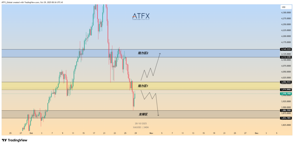现货黄金短期处于关键区间震荡。下方支撑区位于3887至3855美元区间,是本轮多头能否维持的重要防线。若守稳,金价或出现反弹。上方阻力区1集中在3975至4007美元附近,这里既是前期反弹高点区间,也是短期多空博弈的核心位置;一旦突破,进一步目标将指向阻力区2,即4112至4145美元区域,只有站稳该区间,黄金才有望重新挑战4200美元上方。若金价跌破支撑区域,则短线可能再度承压,下行目标或指向3800美元下方。因此,短期走势的关键在于金价能否在支撑区获得企稳机会,或者被压制在阻力区下方继续走弱。