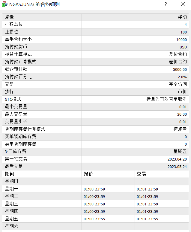 在平台上的合约细则中,也可以查看到美国天然气期货合约到期日,详细如下图: