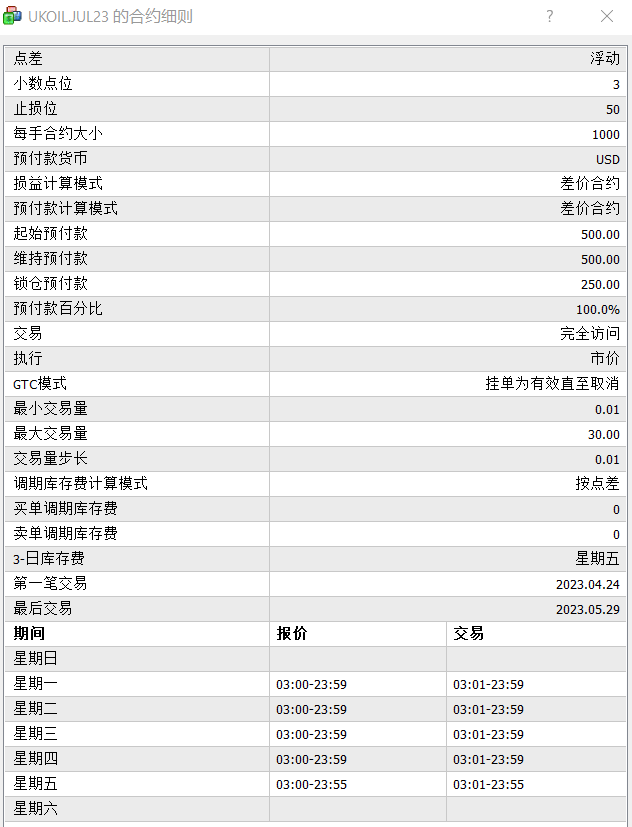 | 2023年8月份的 英国布伦特原油 (UKOIL.AUG23) | 2023年5月25日 03:01 (系统时间GMT+3) | 2023年5月25日 08:01 (北京时间GMT+8) |