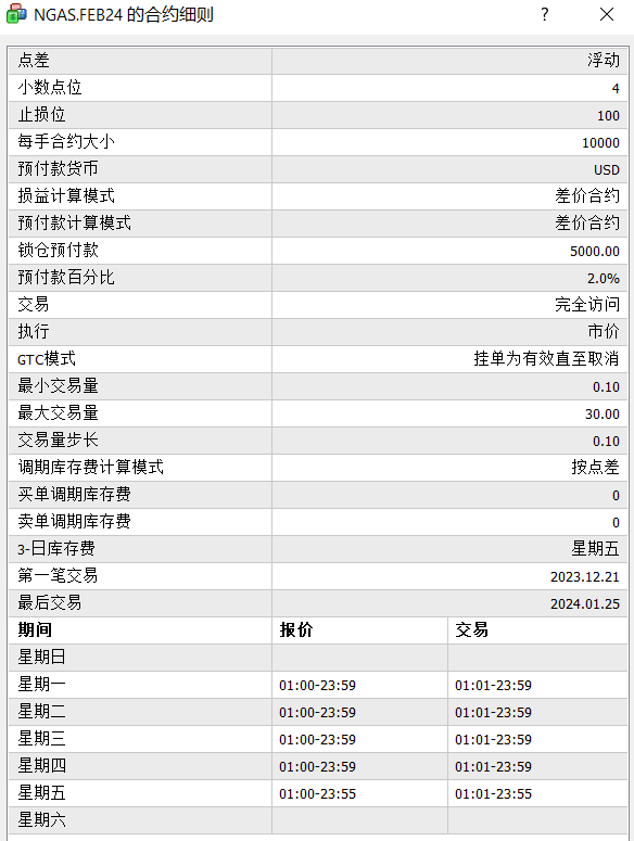 在平台上的合约细则中,也可以查看到美国天然气期货合约到期日,详细如下图: